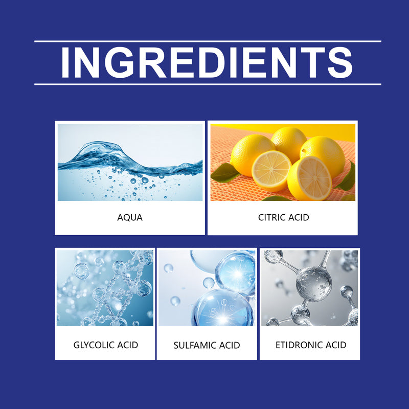 Hauptinhaltsstoffe: Wasser, Zitronensäure, Amidosulfonsäure, Glykolsäure, Hydroxyethandiphosphonsäure